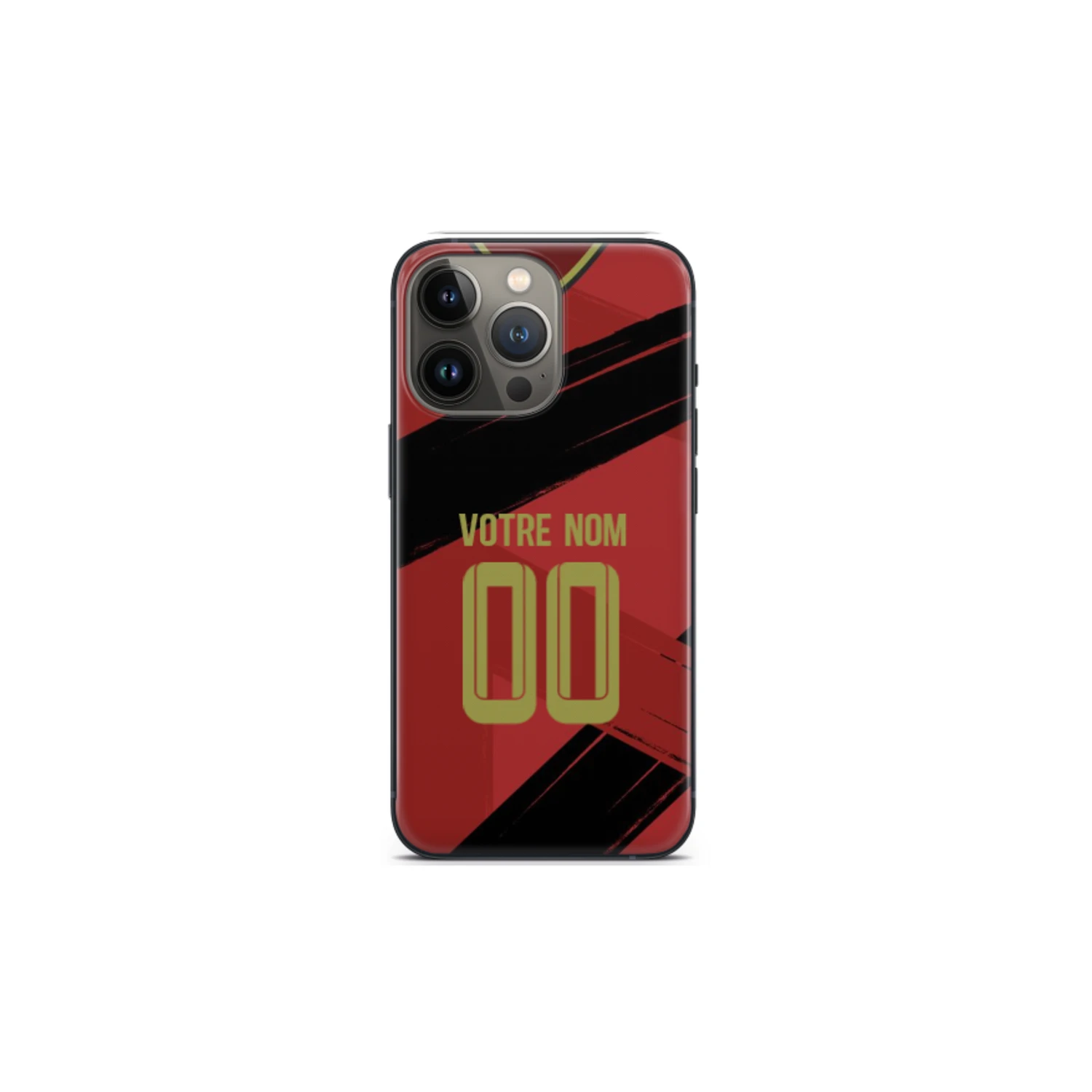 Etui de football pour t-shirt Belgique pour iPhone (avec votre propre nom et numéro)