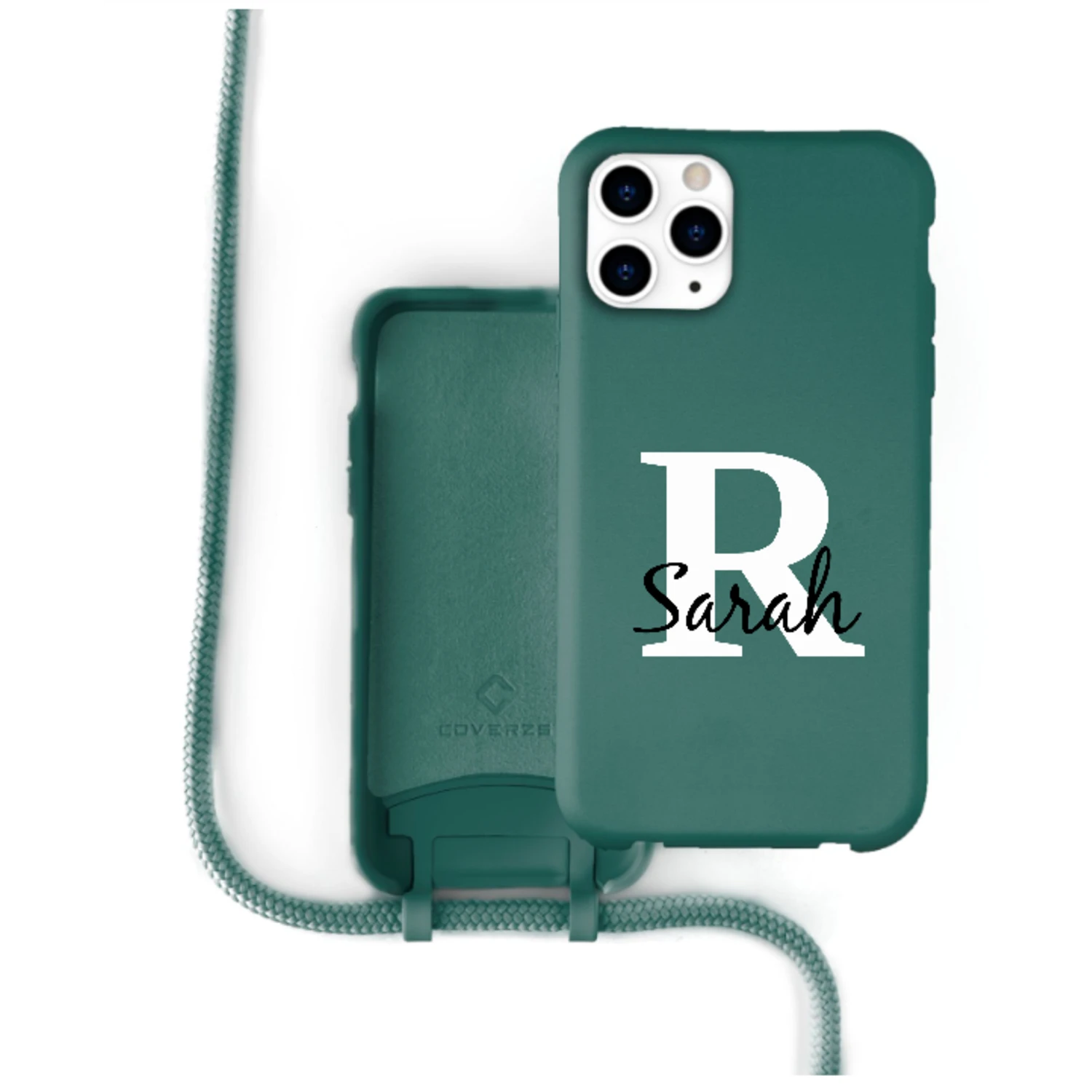 Housse en silicone avec cordon pour iPhone (vert foncé)