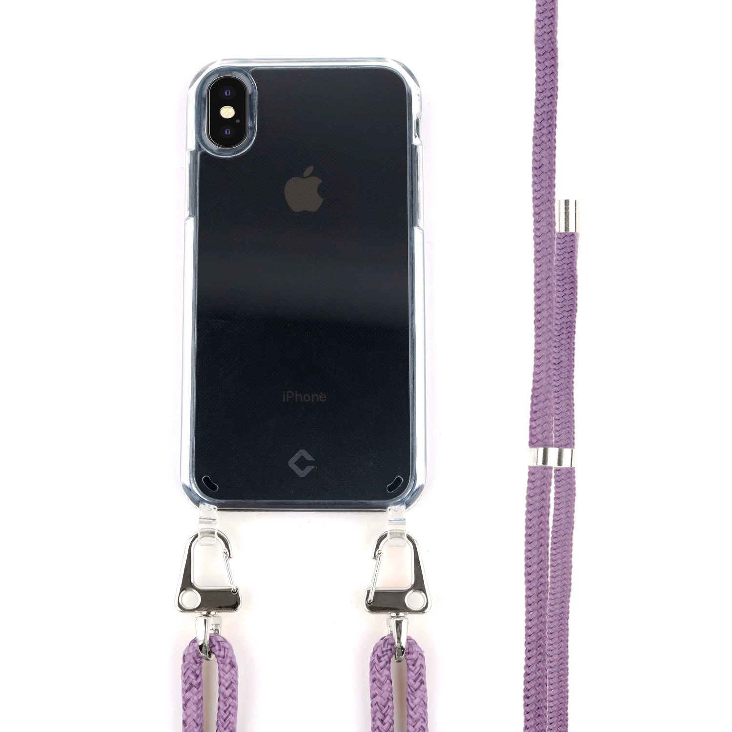 Coque transparente avec cordon violette pour iPhone X/Xs