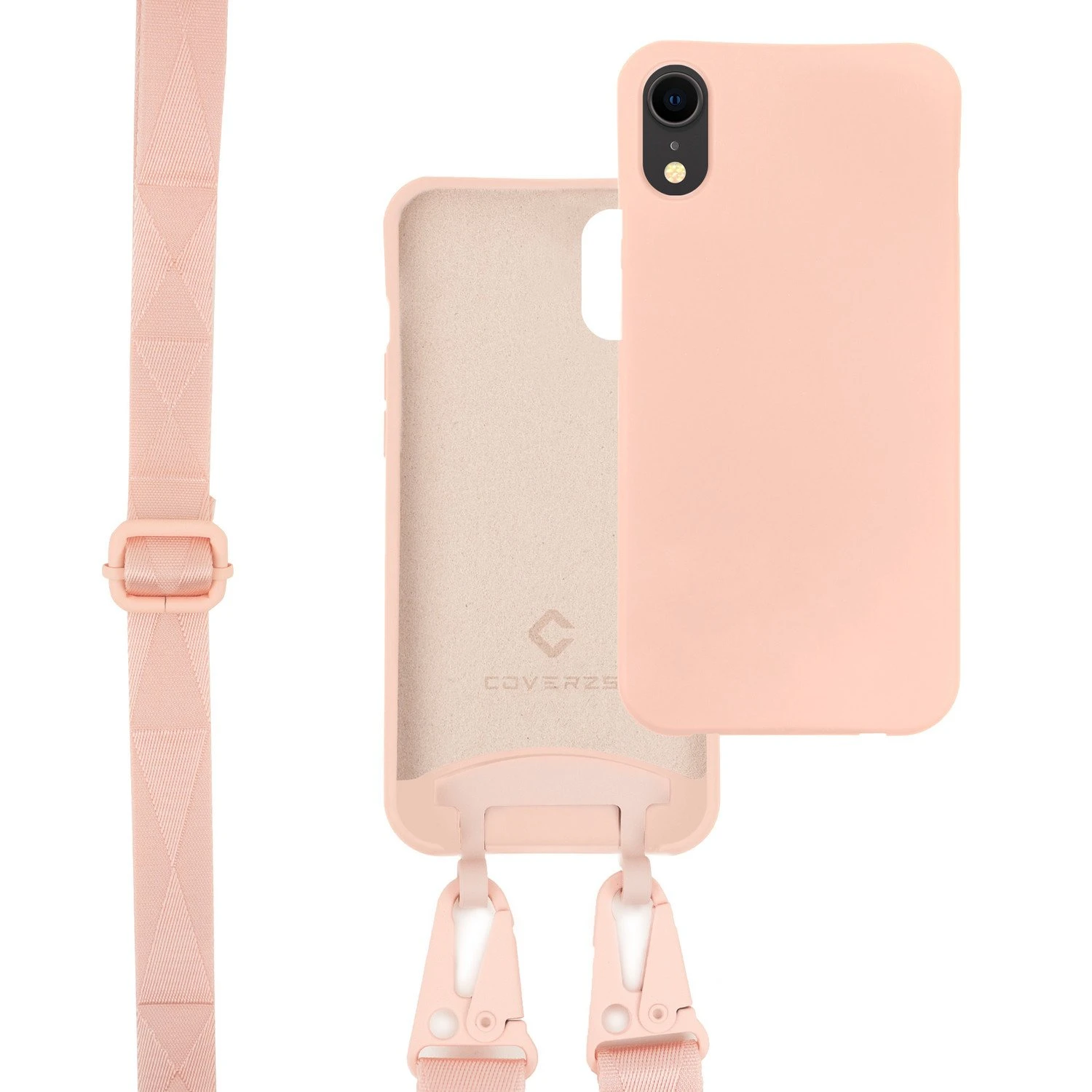 Coque en silicone avec cordon épais pour iPhone Xr (rose)