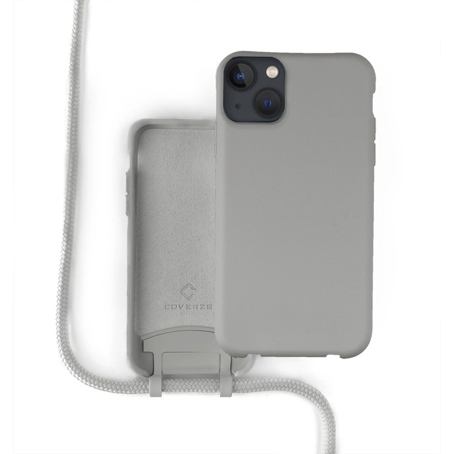 Coque en silicone avec cordon pour iPhone 13 (Gris)