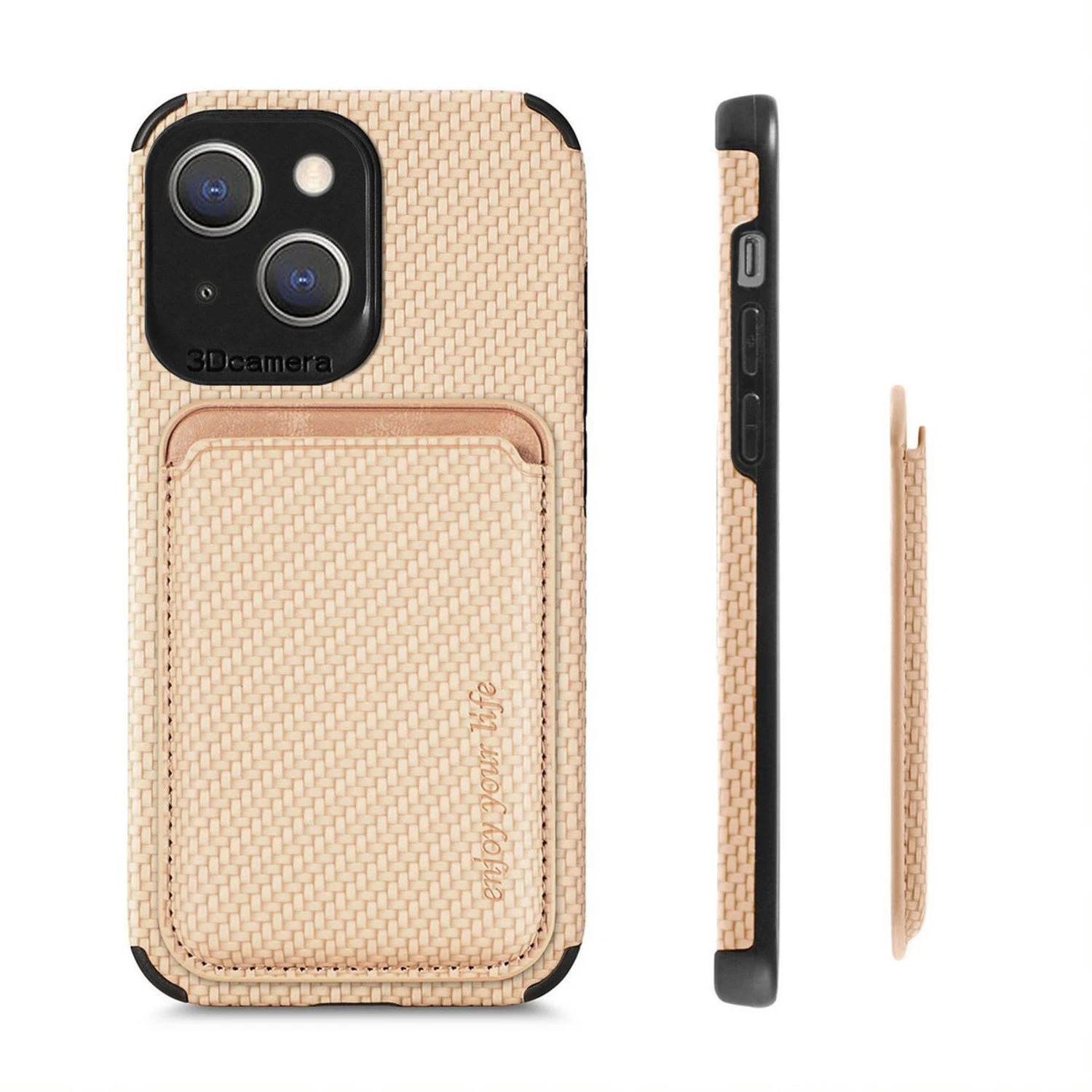 iPhone 13 Etui MagSafe en silicone tressé avec porte-cartes (kaki)