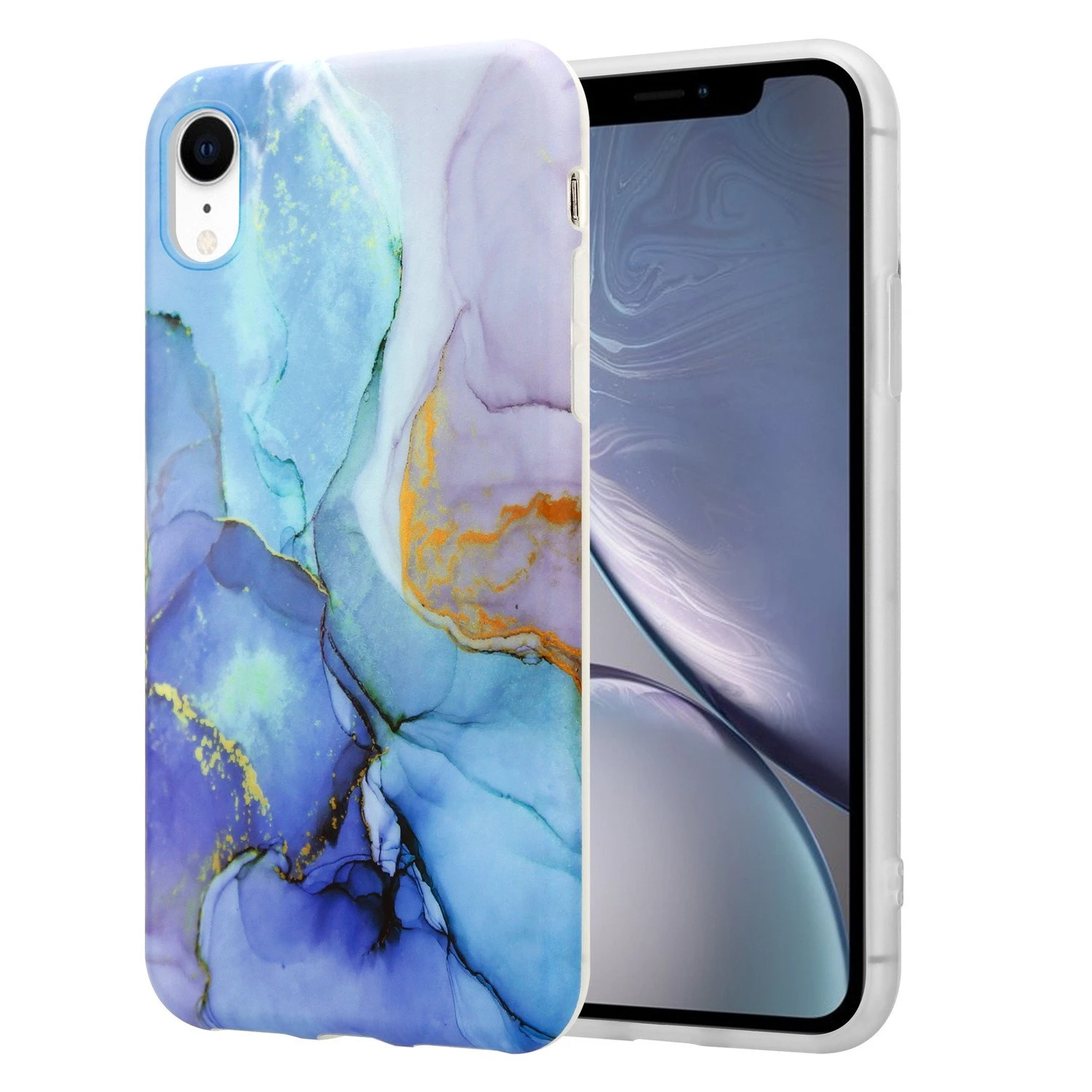 Quelques caractéristiques de la coque en marbre bleu foncé pour iPhone Xr avec protection pour appareil photo