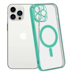 Etui transparent pour iPhone 14 Pro Max avec bords galvanisés (vert)