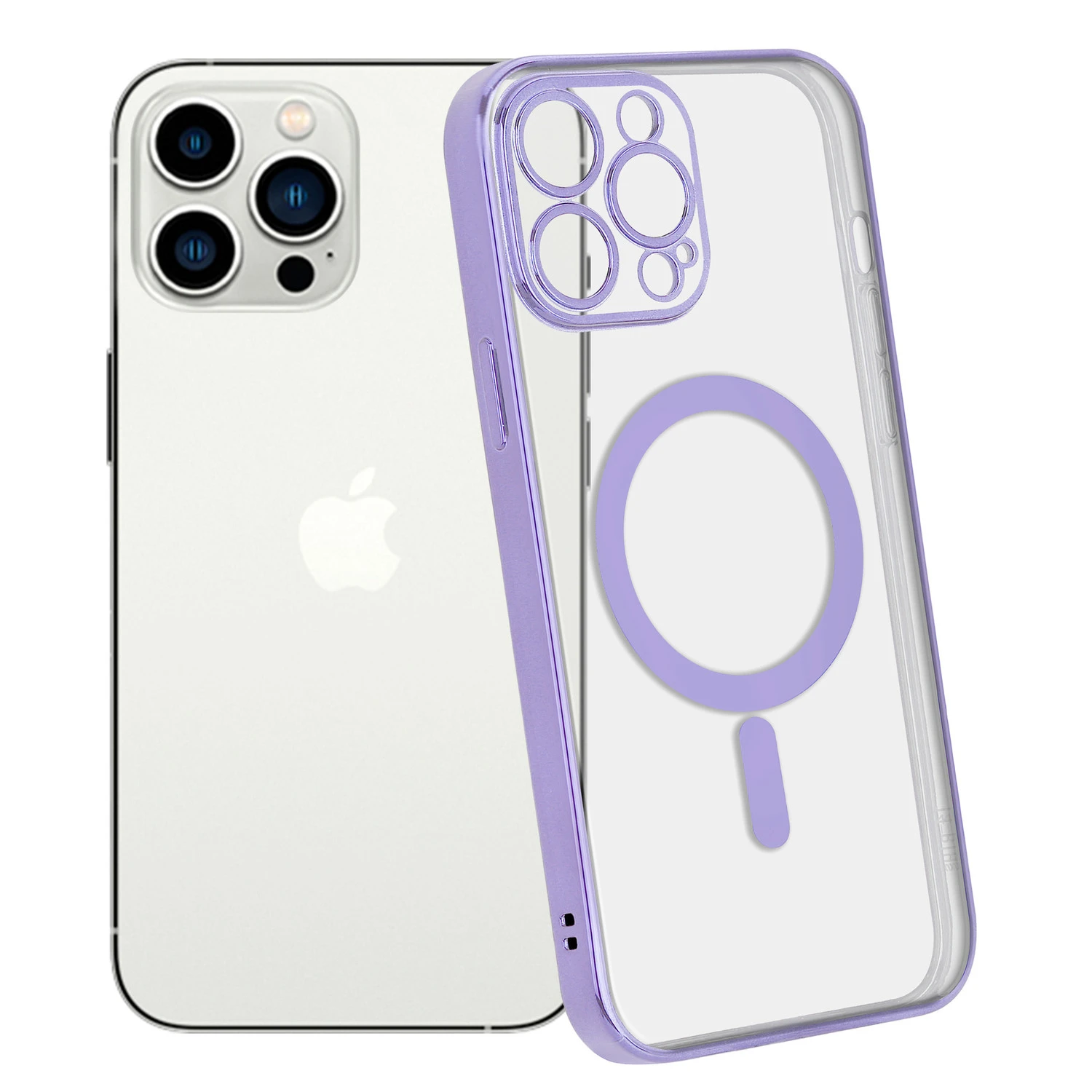 Etui transparent pour iPhone 14 Pro Max avec bords galvanisés (violet)