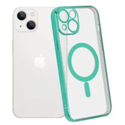 Etui transparent pour iPhone 14 avec bords galvanisés (vert)