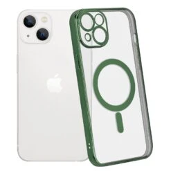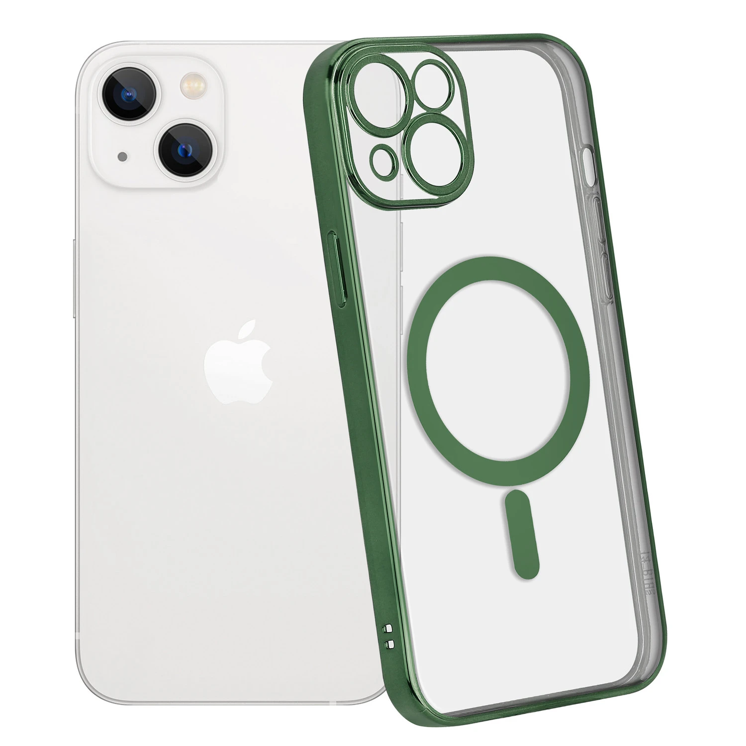 Etui transparent pour iPhone 14 avec bords galvanisés (vert foncé)