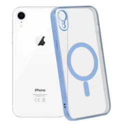 Etui transparent pour iPhone Xr avec bords galvanisés (bleu)