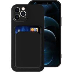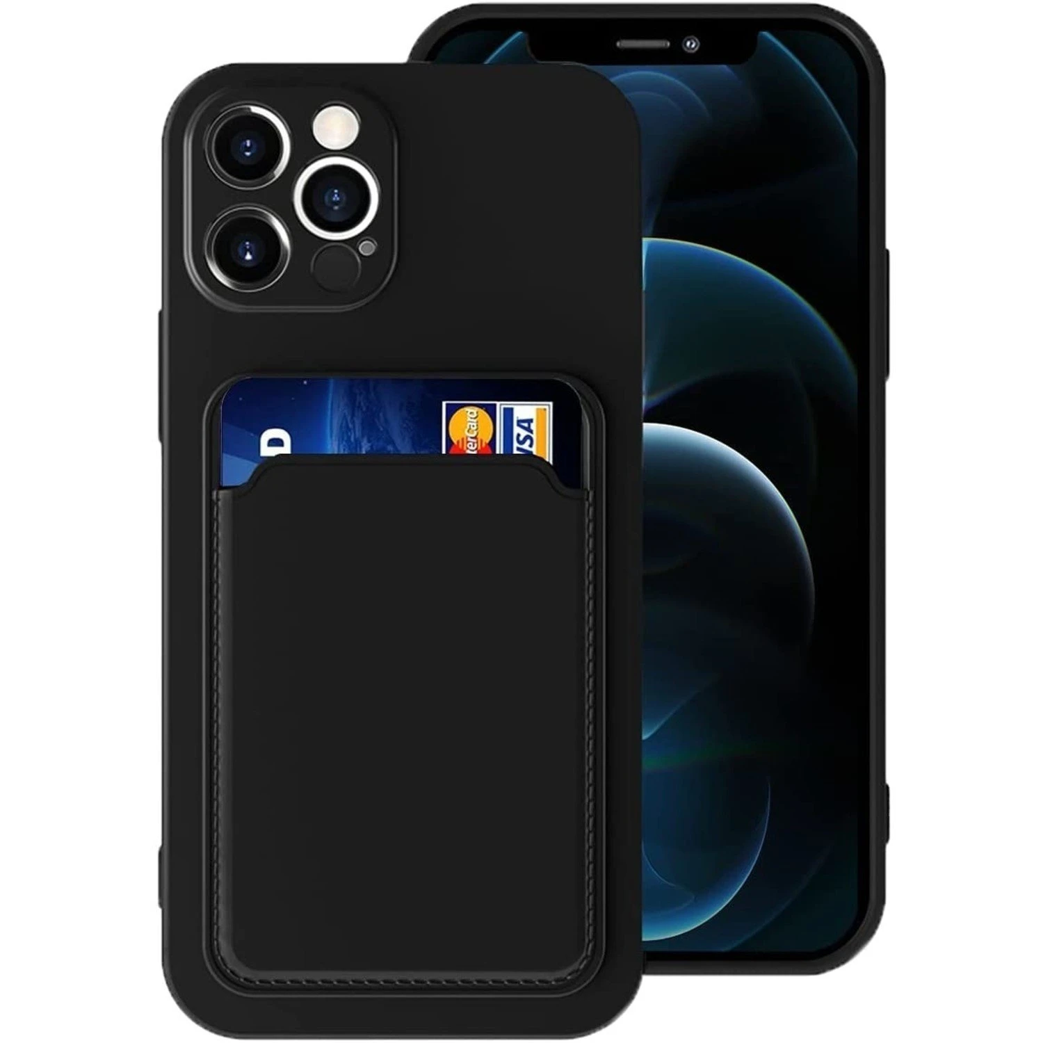 Coque en silicone pour iPhone 13 Pro avec porte-carte (noir)