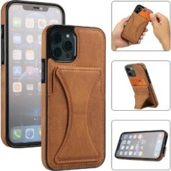 Étui en cuir pour iPhone 13 Pro avec support et porte-cartes (marron)