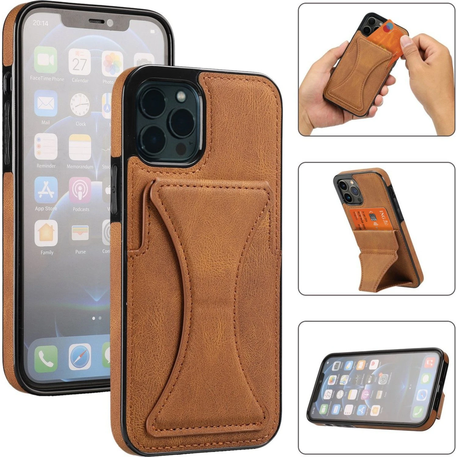 Support et porte-cartes sur votre étui en cuir pour l’iPhone 13 Pro