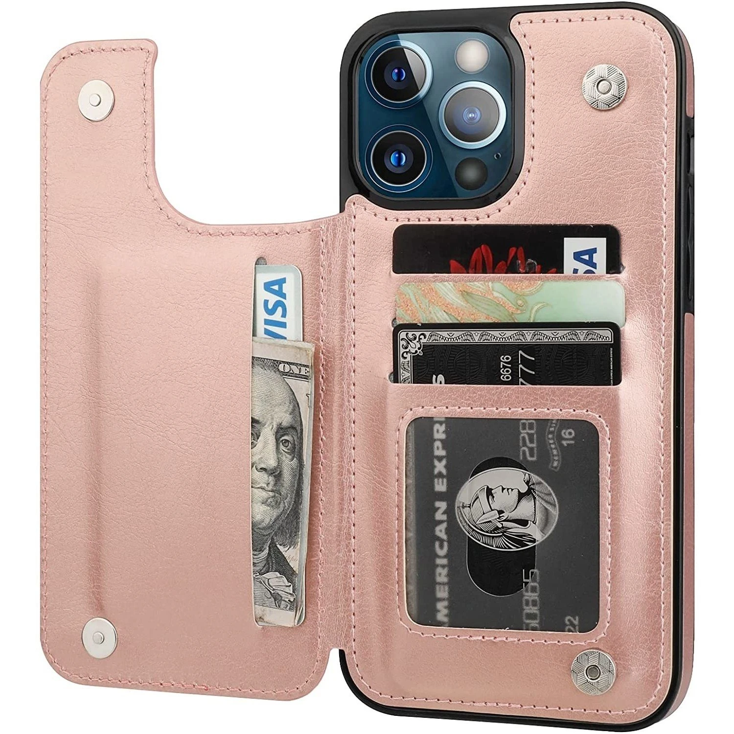 L’étui portefeuille pour iPhone 13 Pro Max dispose d’une fonction portefeuille pratique à l’arrière, dans laquelle vous pouvez ranger un nombre (2 à 3) de cartes et un peu d’argent liquide. Vous n’avez donc pas besoin de transporter un autre portefeuille.